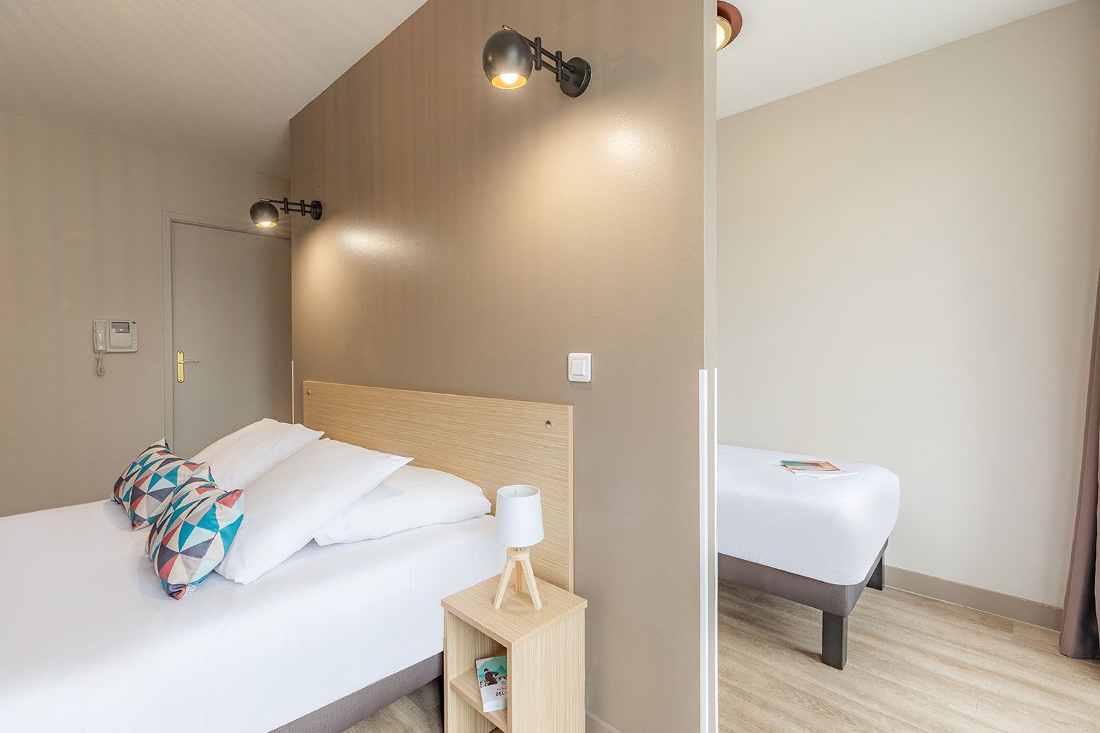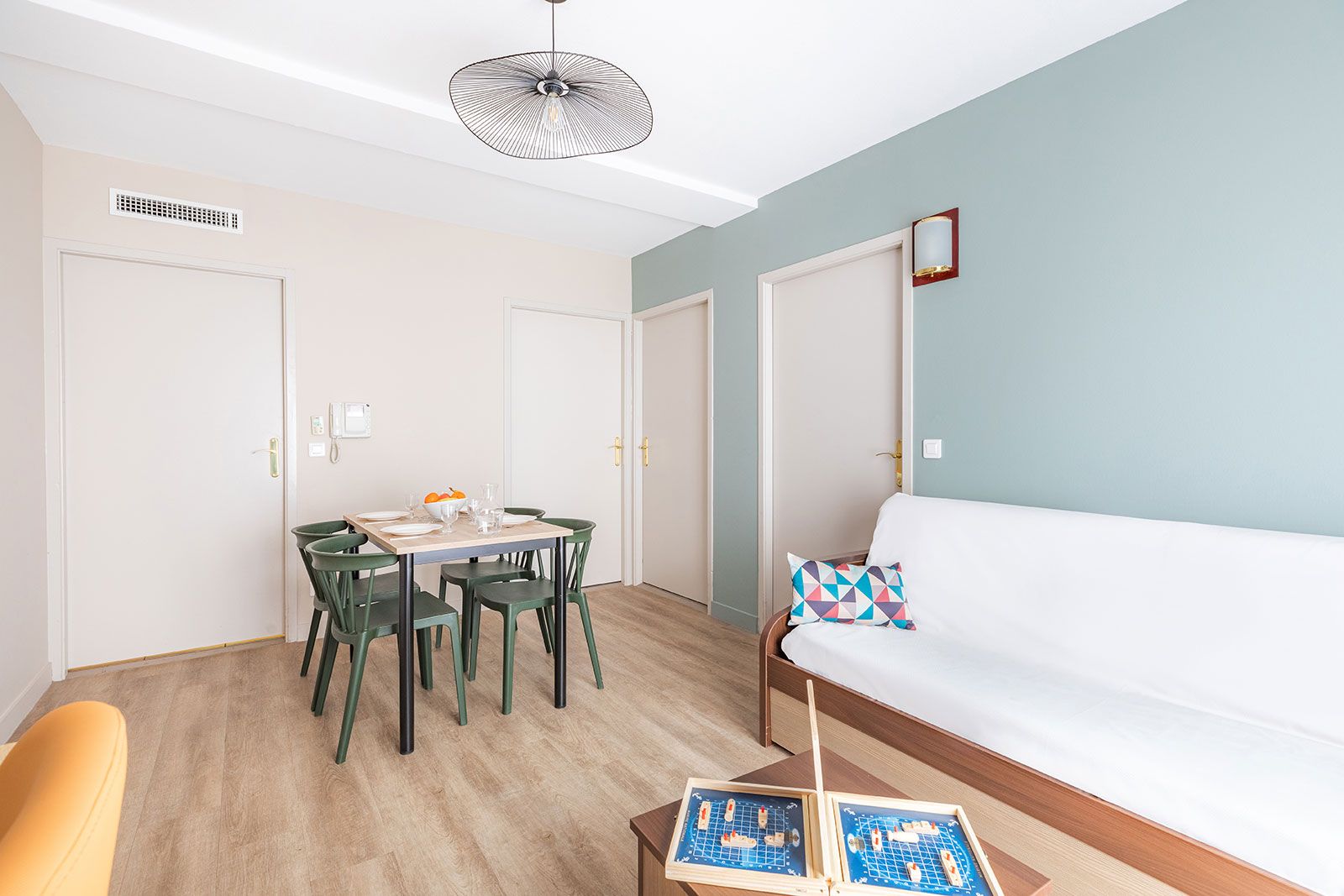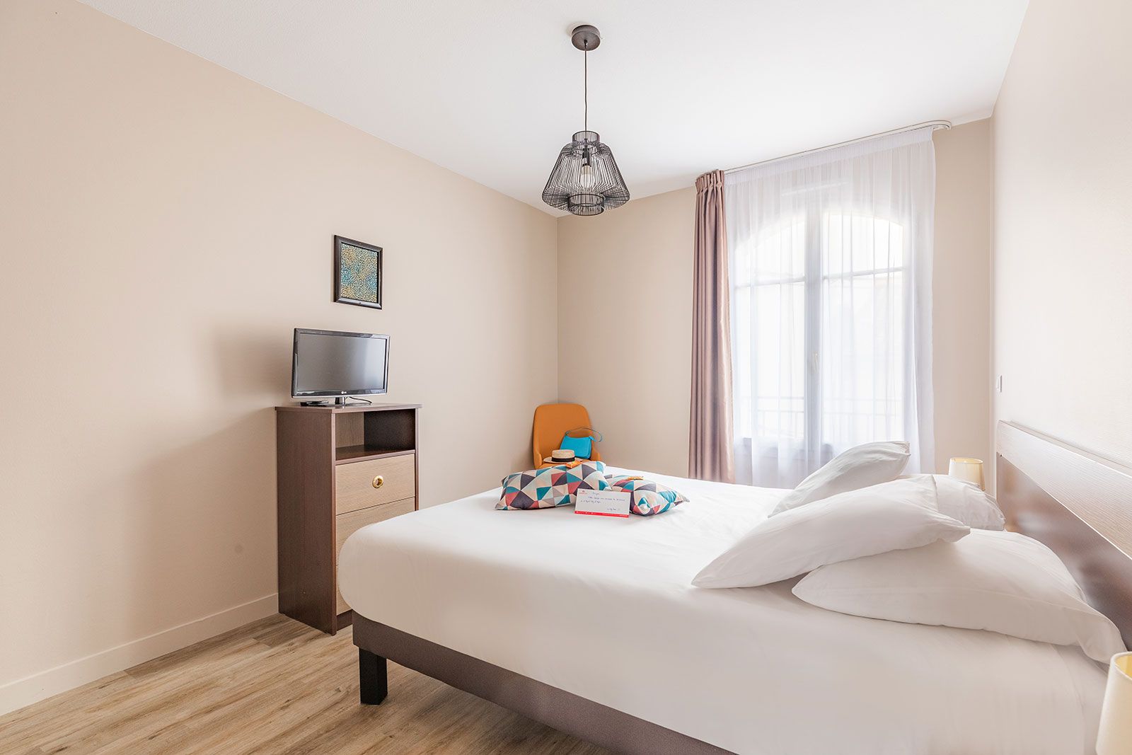 From the 2 to 3 person studio to the 3 room apartment that can accommodate up to 6 people, choose the category that suits you and that will perfectly adapt to your family configuration. All the accommodations in your Agen Centre apartment-hotel have in common superior quality bedding, a work space, as well as a fully equipped kitchen allowing you to evolve independently, at your own pace.