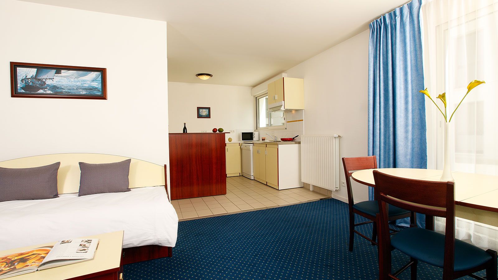Puede elegir entre estudios funcionales, pisos dobles o de dos camas, o amplios pisos de 2 a 3 habitaciones para un máximo de 6 personas. Cada espacio vital está meticulosamente diseñado para ofrecerle un momento de relax, con todo lo que necesita a su disposición. En los pisos hay una zona de trabajo y una cocina totalmente equipada con fogones, microondas, cafetera o tetera y frigorífico, así como lavavajillas.