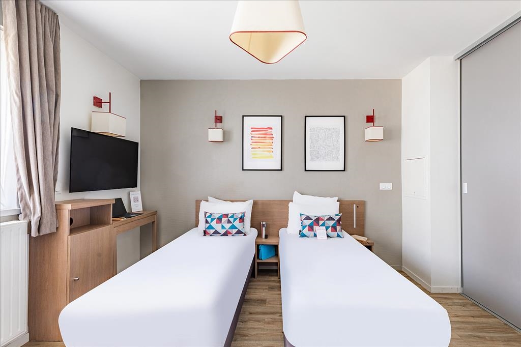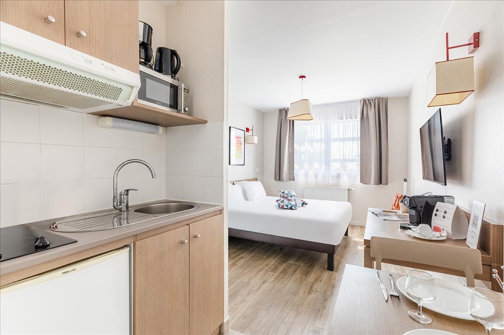 Desde el estudio doble hasta el piso de 2 habitaciones que puede alojar hasta 4 personas, su apartahotel de Orleans puede adaptarse a diferentes configuraciones y se adaptará tanto a los viajeros de negocios como a los turistas. Diseñados para una vida totalmente independiente, encontrará un confort de 3 estrellas y todas las comodidades necesarias para la vida diaria, como un espacio de trabajo, una sala de estar con sofá cama en los pisos y una cocina totalmente equipada con vitrocerámica, frigorífico y microondas.