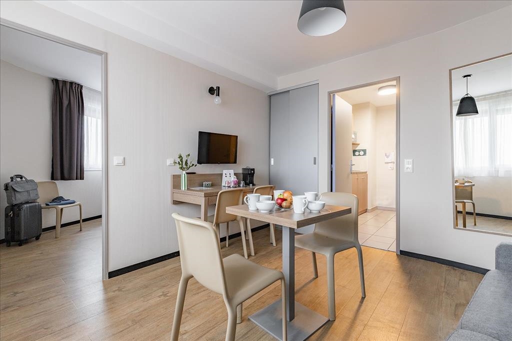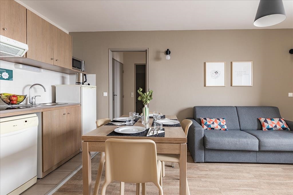Installez-vous dans un logement confortable et indépendant. Pour votre séjour à Amiens, vous aurez le choix entre des studios fonctionnels pour 1 à 2 personnes, des appartements 2 pièces jusqu’à 4 personnes ou bien l’option familiale avec des 3 pièces pouvant accueillir jusqu’à 6 personnes. Des configurations d’espaces qui s’adaptent à tous les besoins. Vous y serez comme chez vous, avec à votre disposition une literie de qualité supérieure, un coin bureau et une cuisine entièrement équipée comprenant des plaques de cuisson vitrocéramiques, un réfrigérateur, un micro-ondes et un lave-vaisselle. Un espace salon cosy avec canapé convertible est également aménagé dans les appartements.
