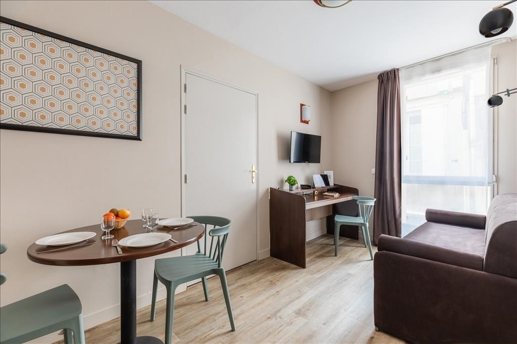 Du studio 2 à 3 personnes à l’appartement 3 pièces pouvant loger jusqu’à 6 personnes, choisissez la catégorie qui vous convient et qui s’adaptera parfaitement à votre configuration familiale. Tous les hébergements de votre appart-hôtel Agen Centre ont en commun une literie de qualité supérieure, un espace de travail, ainsi qu’une cuisine équipée vous permettant d’évoluer en toute autonomie, à votre rythme.