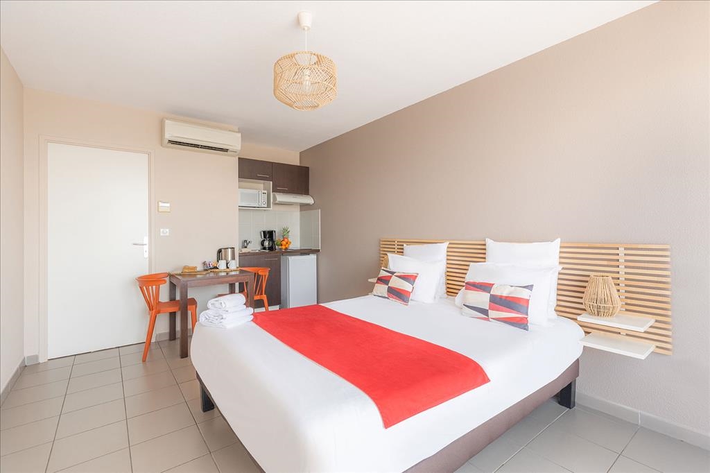 Entièrement meublés et décorés avec soin, les hébergements s’étendent du studio fonctionnel pour 2 personnes à l’appartement familial 3 pièces pouvant accueillir jusqu’à 8 personnes. Tous sans exception disposent d’une cuisine entièrement équipée, d’une literie de qualité, d’un coin bureau ainsi que d’une climatisation réversible. Les appartements sont agrémentés d’un espace salon spacieux avec canapé-convertible.